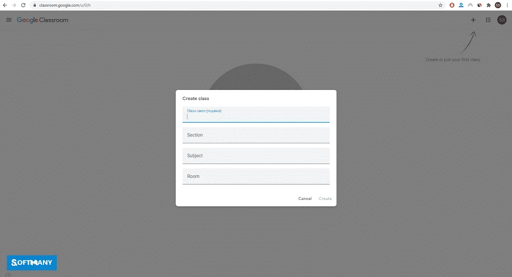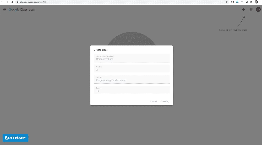 Now you can create a class by clicking the + button, and next classes in the same way. The created classes will be shown on the home screen. You need to add names, sections, and subjects for the identification of students.